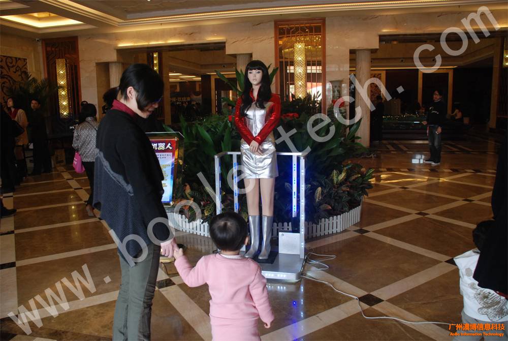按照標(biāo)準(zhǔn)1.7米人體比例設(shè)計(jì),擁有靚麗外表,當(dāng)游客經(jīng)過(guò)的時(shí)候,還會(huì)鞠躬問(wèn)候,加上絢麗的LED站臺(tái),讓人眼前一亮。有興趣的朋友還可以拿起麥克風(fēng)與美女迎賓機(jī)器人對(duì)話呢!