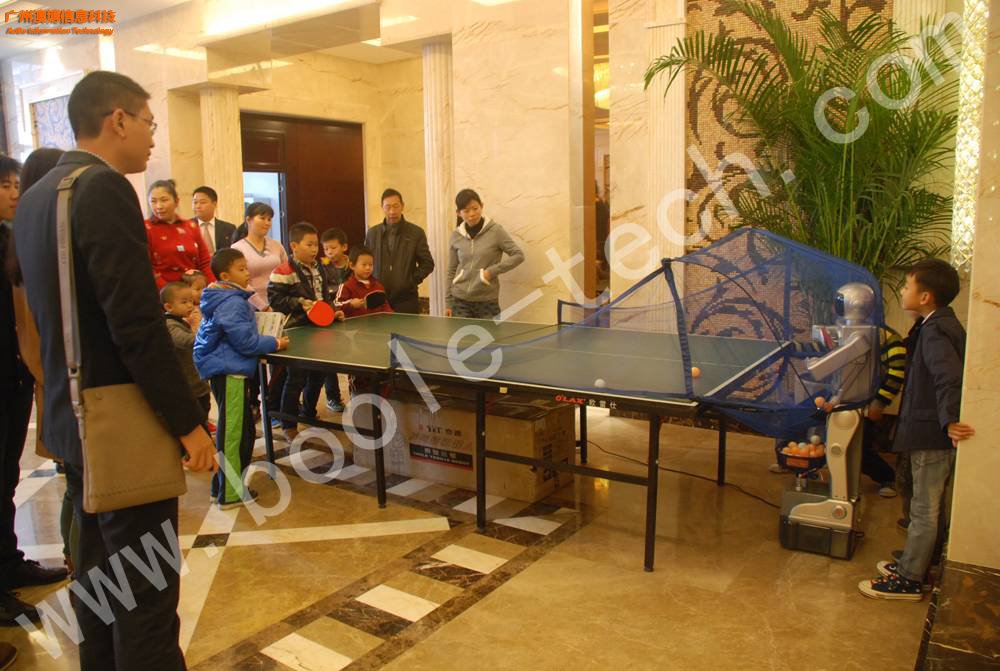 乒乓球機(jī)器人是現(xiàn)場(chǎng)互動(dòng)性比較強(qiáng)的一款機(jī)器人,機(jī)器人通過(guò)不斷地發(fā)球,訓(xùn)練接球能力。機(jī)器人設(shè)有定點(diǎn)發(fā)球和多點(diǎn)發(fā)球模式,針對(duì)單人和雙人對(duì)打,趣味無(wú)窮。