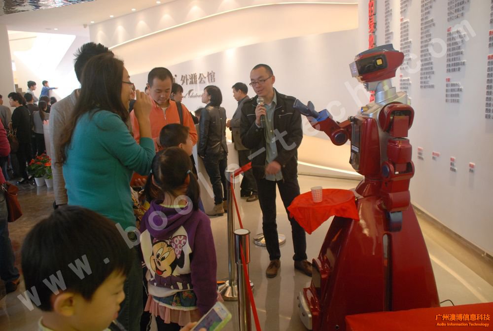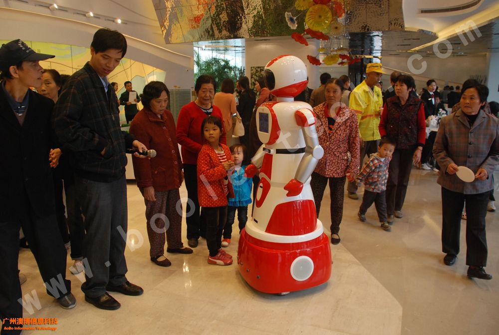該機器人擁有基本的迎賓互動功能,能與游客打招呼,導覽,與人語音對話互動,靈活的雙手還能代替工作人員派傳單呢!